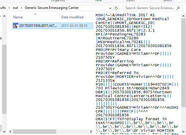 What this does is generate a HL7 file in the Output Path for the selected Emessaging Carrier
