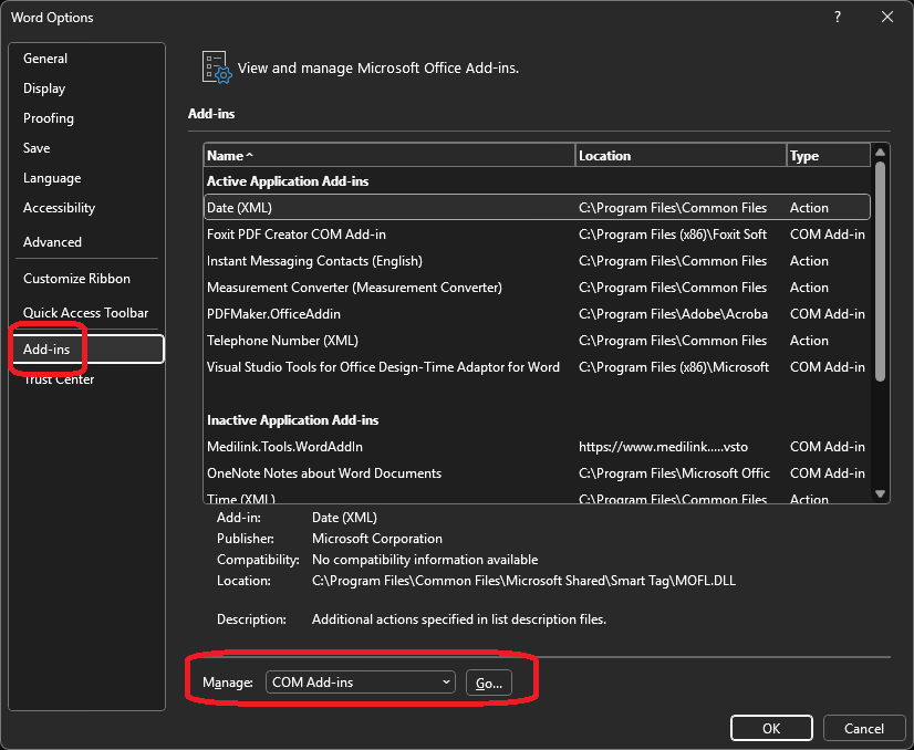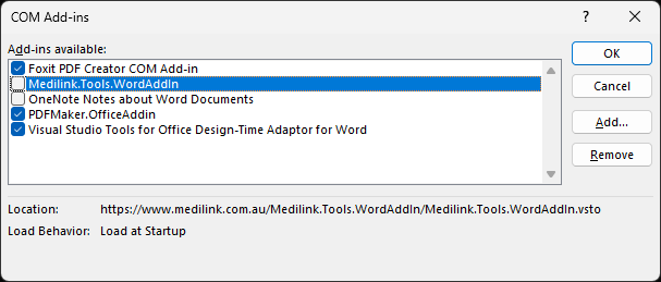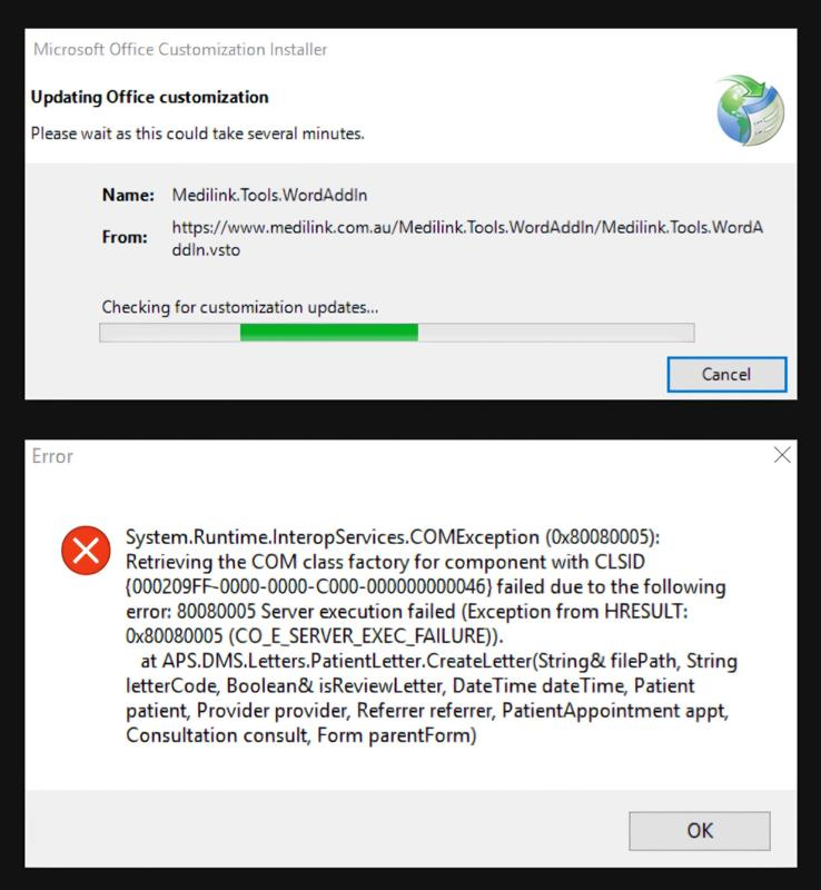 This is causing a problem when Word opens where the Medilink WordAddIn update check will fail, which then in turn also causes Medilink letter creation to stall/fail.