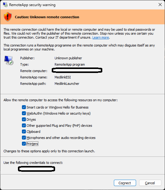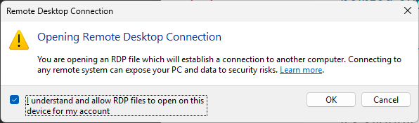 In April 2026 Microsoft started adding warnings when opening Remote Desktop or RemoteApp sessions.
